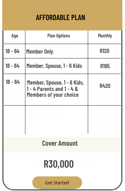 *Get a funeral cover qoute of up to R30 000